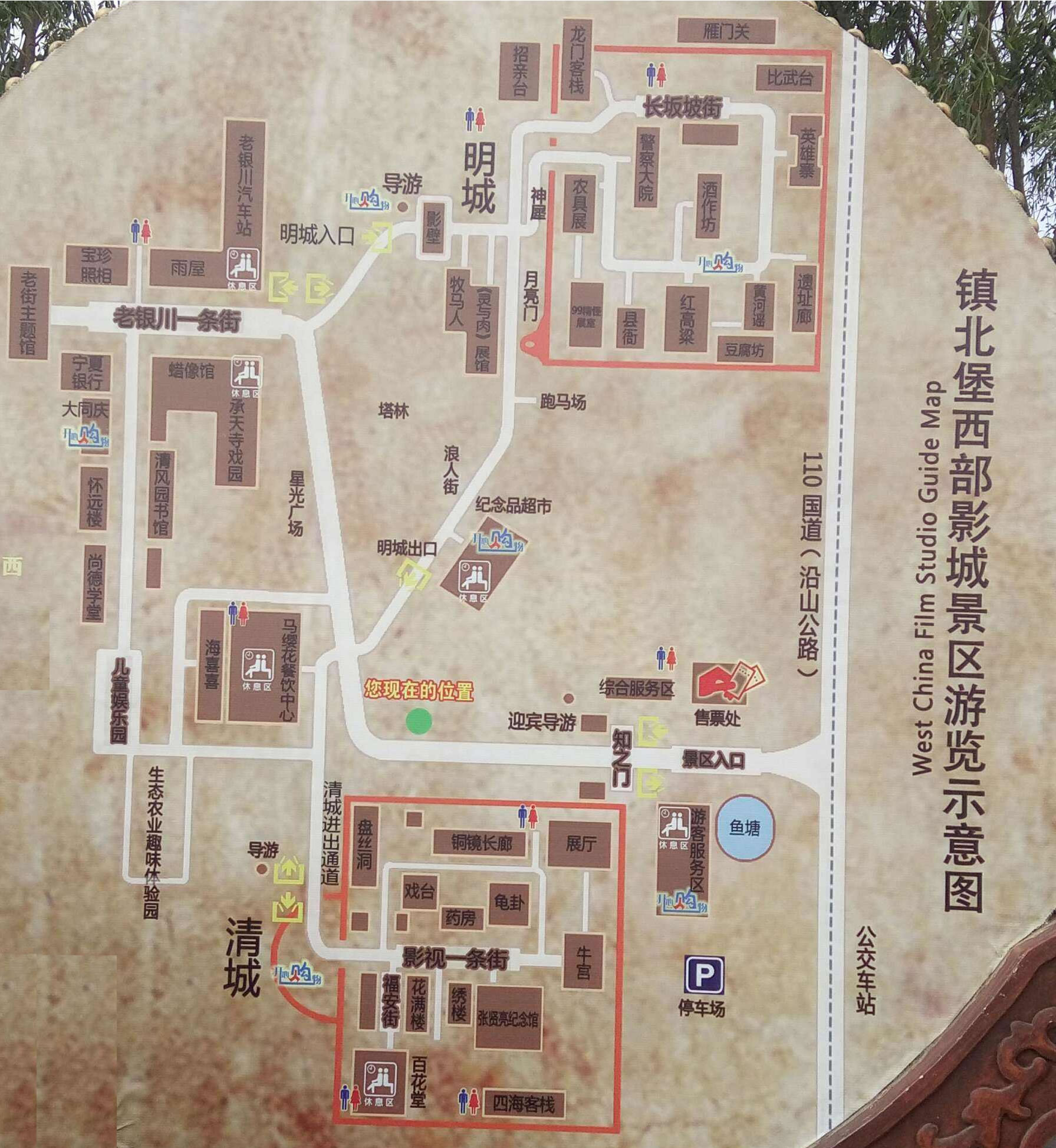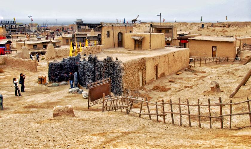 鎮(zhèn)北堡西部影城,位于寧夏回族自治區(qū)銀川市西夏區(qū)北端,占地面積0.7平方公里,建筑面積50萬平方米。鎮(zhèn)北堡西部影城有兩座古代城堡,兩堡一南一北,名為鎮(zhèn)北堡和鎮(zhèn)南堡,均坐西朝東。鎮(zhèn)北堡西部影城以古樸原始粗獷荒涼民間化為特色。鎮(zhèn)北堡西部影城內(nèi),保留和復(fù)原了拍攝過部分影片的場(chǎng)景和道具,供游人觀賞。展出的場(chǎng)景有《大話西游》中的城門樓和城門洞盤絲洞,孫悟空與牛魔王打斗時(shí)的“天崩地裂”等一系列場(chǎng)景!饵S河謠》中的“鐵匠營”實(shí)景!都t高粱》中的月亮門、釀酒作坊、九兒(鞏俐飾)居室和九兒出嫁時(shí)乘坐的轎子、盛酒的大缸碗具等。還建有電影資料館放映廳等影視服務(wù)設(shè)施。
