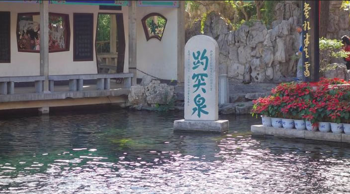趵突泉又叫檻泉,是濼水的源頭,如今已有二千七百年的歷史!磅劳蝗,三窟并發(fā),聲如隱雷”,“泉源上奮,水涌若輪”。泉水一年四季恒定在攝氏18度左右,嚴(yán)冬,水面上水氣裊裊,薄霧冥冥,一邊泉池波光粼粼,一邊是亭臺樓閣,金壁煌煌,構(gòu)成了一幅奇妙的人間仙境。歷代著名文學(xué)家、哲學(xué)家、詩人諸如曾鞏、蘇軾、張養(yǎng)浩、王守仁、蒲松齡等都有吟泉都忍不住在此留下美文以志之。