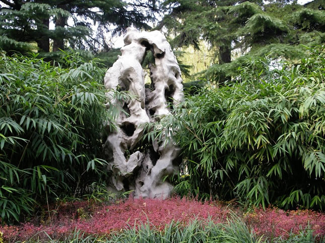 趵突泉原來還有一座麟石,“七七事變”時被日本帝國主義的飛機炸毀。四座靈石僅存的只有這一龜石。它是一座玲瓏剔透、栩栩如生的太湖石,高近4米,重約8噸。該石挺拔露骨,多空竅,筋絡(luò)明顯,多凹凸,具有太湖石品中的“皺、瘦、透、漏”的特點。