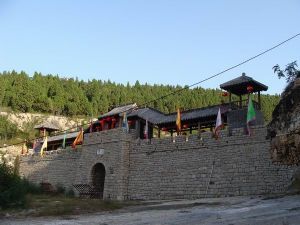 落在山勢險峻,谷深崖陡、植被茂密的雄偉攔谷建筑就是“二關”,該建筑為邊關哨卡式建筑,寨墻和大門為全石結構,因為受環(huán)境、條件限制,北宋時期義軍用干碴砌壘,占地面積200多平方米,長40余米,高8米,寬3.5米,該建筑卡谷而立森嚴壁壘,旗掩霸寨,由插翅虎雷橫把守。