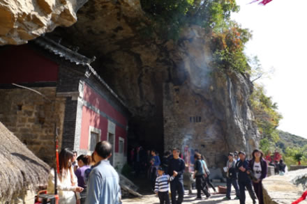 位于旅游北線,傳說為唐賽兒藏“天書劍匣洞”的地方,原先供奉九天玄女,在這可俯瞰潭溪山全景,遙想古人“喝茶賞月,迎彩送霞”之境,是北線最佳觀景點(diǎn)之一,石壁上由天然菩薩像一處。