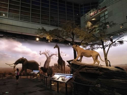 地面二層是科技館二期展館之一,內(nèi)有地球家園、信息時(shí)代、機(jī)器人世界、蜘蛛展四個(gè)展區(qū)。