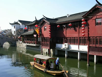 七寶老街改造歷時兩年多,現(xiàn)已完成一、二期建設(shè)任務(wù)。第一期,修繕蒲匯塘橋和南北一條街,辟建鐘樓和塘橋兩處休閑廣場。第二期,新建蒲匯塘水閣和修復相應(yīng)的上塘房,重建東西兩座石橋、蒲匯碼頭和七寶校場,恢復典當街,建造張充仁紀念館等。主事者重視古鎮(zhèn)修復改造中的文化表現(xiàn),在世人面前展現(xiàn)的是一條保留明清建筑特色的商業(yè)文化街,同時兼有地方文化內(nèi)涵的歷史老街。作為閔行區(qū)唯一還保存著古樸建筑風貌的七寶古鎮(zhèn),現(xiàn)在成了游人們訪舊懷古之勝地。不然,享有盛名的七寶老酒去哪里聞?在以餐飲小吃為主的南大街上,返璞歸真的酒坊還在,七寶老酒的生產(chǎn)全過程一一展示于人。傳統(tǒng)的七寶羊肉,白切、紅燒、熱煲,各種口味應(yīng)有盡有,連外來的“喬家柵”也看中此間古意而入駐老街。