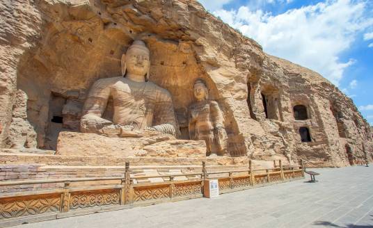 云岡石窟,原名靈巖寺、石佛寺。位于山西省大同市西郊17公里處的武州山南麓,是中國(guó)著名的石窟群之一。云岡石窟的開鑿始于北魏時(shí)期,北魏皇始三年(398年),道武帝拓跋珪將都城從盛樂(今和林格爾縣)遷至平城(今大同市),武州山成為盛樂與平城之間的交通要沖。文成帝拓跋濬即位后,令沙門統(tǒng)曇曜主持復(fù)法大業(yè)。在文成帝的支持下,曇曜選擇了鐘靈毓秀的武州山,"鑿山石壁,開窟五所,鐫建佛像各一,高者七十尺,次六十尺,雕飾奇?zhèn)ィ谟谝皇?quot;。云岡的大部分洞窟在孝文帝元宏遷都洛陽前完工,但是造像工程則一直延續(xù)到正光年間(520~525年)。云岡石窟的開鑿歷時(shí)約150年,歷經(jīng)北魏、東魏、西魏、北齊、隋、唐等朝代,現(xiàn)存主要洞窟45個(gè),大小窟龕252個(gè),石雕造像59000余尊,是中國(guó)石窟藝術(shù)寶庫中的瑰寶。