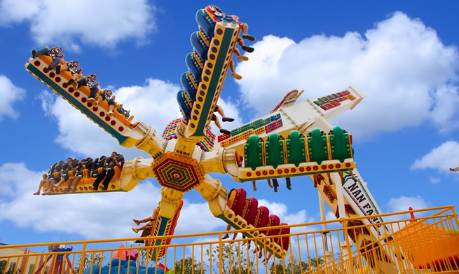 在優(yōu)美、輕快的旋律中,碩大的轉(zhuǎn)盤和轉(zhuǎn)臺(tái)錯(cuò)向旋轉(zhuǎn)、搖擺,隨著轉(zhuǎn)盤的搖擺,塔身徐徐上升。此時(shí),穩(wěn)坐飛椅的游客在離心力的作用下,上下飛旋,時(shí)而像在藍(lán)天翱翔,時(shí)而像在海上沖浪,能感受到騰云駕霧的快感。想體驗(yàn)兒時(shí)蕩秋千的感覺嗎,想體驗(yàn)在空中展翅飛翔的暢快嗎,那就來到高空飛翔盡情的放聲尖叫吧……
