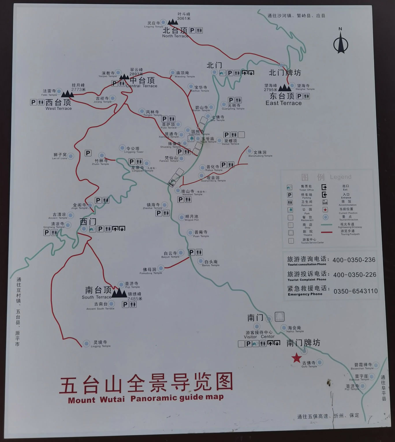 五臺(tái)山,方圓250公里,總面積2837平方公里。以臺(tái)懷鎮(zhèn)為中心,周?chē)倭⒅鴸|、西、南、北、中五個(gè)山峰,高出云表,山頂無(wú)林木,如壘土之臺(tái),稱作五臺(tái)。最高點(diǎn)北臺(tái)葉斗峰海拔3058米,被稱為“華北屋脊”。