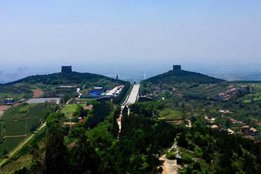 乾陵是陜西關(guān)中地區(qū)唐十八陵之一,位于陜西省咸陽市乾縣北部,距離縣城6千米的梁山上,為唐高宗李治與武則天的合葬墓。陵園規(guī)模宏大,陵域占地“周八十里”(《唐會(huì)要》)。陵園有內(nèi)外兩重城墻,其中內(nèi)城南北墻各長1450米,東城墻長1583米,西城墻長1438米,總面積接近240萬平方米。