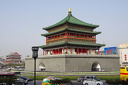 鐘鼓樓為鐘樓和鼓樓的合稱,均為中國古代的報時建筑。鐘樓是一座重檐三滴水式四角攢尖頂?shù)拈w樓式建筑,鼓樓為古代城市中設置大鼓的樓。用以擊鼓報警,或按時敲鼓報告時辰。鐘鼓樓合理的建筑結構、華麗的建筑色彩、典雅的裝飾構件,都具有濃郁、鮮明的民族文化特色,是西安標志性建筑物,先后接待了周恩來、朱德等國家領導人和眾多中外著名人士。