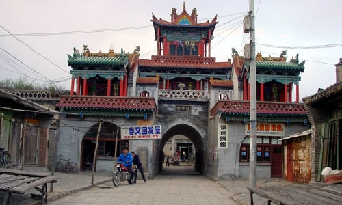 高家堡古城:唐屬豐州地,舊稱飛鴉川、彌川。城池始建于明正統(tǒng)四年(1439),原隸屬佳州,清末劃歸神木。該城位于神木縣城西南海50公里的禿尾河?xùn)|岸,西北距明長城約5公里,原為夯筑土城,萬歷三十六年(1608)用磚包砌,清乾隆十五年(1750)、三十三年(1768)兩度重修,后多次修葺。該城平面呈長方形、東南墻均長311米,南北墻均431米,殘高6.5—9.1米,基寬7.52米。城墻上部建有1米高的女墻,間有垛口、嘹望洞。北城頭修有三官樓,東南角建有魁星樓。現(xiàn)除魁性樓、女墻、垛口、嘹望洞被壞外,其余的均保存完好。另東、南、西墻各辟一卷門,并筑有甕城,現(xiàn)城門的敵樓、嘹望臺和南門已破壞。城內(nèi)原有的中興樓(1988年被縣人民政府公布為重點文物保護(hù)單位)、城隍廟、財神廟、五道廟、祖師廟、西門寺、貞節(jié)牌坊等古建筑,現(xiàn)僅存中興樓和財神廟,城內(nèi)街道以中興樓為軸心,向東西輻射為東西街,向陽北南北輻射為南街和北巷。明、清到民國初,南街最為繁華,至今大部分鋪面保存完好,東、西、南街各通有巷道。居民建筑群為典型的北方構(gòu)筑風(fēng)格。既有四合院,如北巷的李家大院;又有前庭大院,如東街的盧家大院、西街的韓家大院;還有樓院,如十字巷的李家樓院,同心巷的劉家樓院等。高家堡古城是神木縣乃至整個陜北較為完整的一座城堡,且有獨具特色的保護(hù)價值,神木縣人民政府已擬定將該城列為重點文物保護(hù)單位。