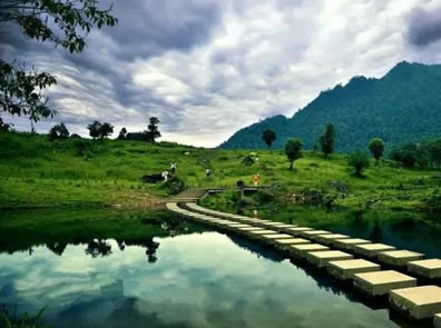 當(dāng)?shù)匾妥逭f, 公母兩個(gè)杜鵑池分居兩地,只能遙遙相望,而不能走近對(duì)方。如果要聽到公、母杜鵑池都發(fā)出嗚嗚的哭聲,那么不管一開始是多么晴好的天氣,就要馬上開始變陰,接著就會(huì)下雨。人們便會(huì)開始猜測(cè),這莫非是一對(duì)被逼分居兩地的情人或者是夫妻所化,心中有無數(shù)懷念之情,冤屈之意無處訴說,便祥托這自然界的風(fēng)和雨?然而,每當(dāng)人們?cè)儐柈?dāng)?shù)厝,問這公、母杜鵑池究竟是怎么回事時(shí),他們便總是搖頭說不知道。是果真不知內(nèi)情,還是畏懼于某種自然的神秘力量而不敢吐露只言片語?我們都無從得知。 |