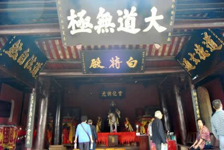 風(fēng)洞樓下是白特殿!疤亍笔潜锐R還能跑的動物,它馬頭、驢身、騾尾、牛蹄,俗稱“四不像”,古人說“千里馬、萬里特”。傳說文昌帝君的坐騎就是全身色白的特,即“白特”,明代著名小說家馮夢龍?jiān)珜憣β?lián):“梓潼帝君乘白特下臨凡界,三清老子騎青牛西出函關(guān)”。這座殿堂就因白特而得名。