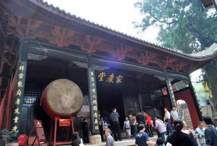 時雨亭旁的這座高臺建筑叫家慶堂。建于明代,叫啟元殿,清代培修之后更名為家慶堂。所謂“家慶堂”是指文昌帝君張亞子舉家歡聚之地。早在北宋初期,宋太祖趙匡胤就對張亞子一家8位主要成員加封圣號;南宋初年宋高宗趙構(gòu)追封4位;又過了二十多年,南宋咸淳五年(1269年)再一次對張亞子的公主和女婿封了圣號,使加封的家庭成員達(dá)到14位。