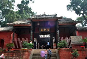 在魁星樓北面,還有頗具氣勢的關(guān)帝廟。七曲山關(guān)帝廟由皋門、拜殿、關(guān)圣殿組成。關(guān)圣殿仍保留明代的建筑特色,皋門、拜殿為清代乾隆時所修,整個古建給人以古樸典雅、雄偉壯麗的感覺。在關(guān)圣殿前有高大木門六道,門上有四幅文昌帝君畫像,繪有文昌帝君及擎著官扇、手托冠冕的侍從。圖中藍(lán)天映襯著白云,溪流漂過,鳥語花香,梅花鹿顧盼左右,整幅圖案隱喻著“有祿”、“加官”的美好祝愿。清華大學(xué)教授黛妲評價說,這四幅明代門畫,線條圓潤渾厚,具有很高的工藝水平。