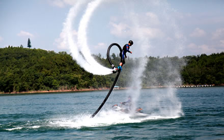在這里,您可以親身體驗風靡歐美、驚險刺激的水上摩托、賽艇、香蕉船、滑水、水上飛人、水上自行車等運動項目;您可以在豪華舒適的游船上盡情領略神奇秀美的仙海風光,享受愜意休閑的假日!