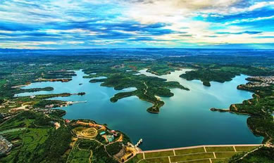 仙海旅游度假區(qū)始建于2003年6月30日,是經(jīng)中共綿陽市委、市政府批準成立的水利經(jīng)濟開發(fā)區(qū),開發(fā)區(qū)黨工委、管委會為綿陽市委、市政府派出機構。10月8日,市委、市政府決定將其更名為綿陽市仙海水利風景區(qū),是四川省第一個國家級水利風景區(qū)。2008年2月,市委、市政府決定將綿陽市仙海水利風景區(qū)對外統(tǒng)稱綿陽市仙海旅游度假區(qū),仙海旅游度假區(qū)總面積75平方公里,轄15個村和2個社區(qū),總人口2.3萬人。以仙海湖為中心的核心區(qū),由6.8平方公里的淺丘低山和7平方公里的水面構成,森林覆蓋率達90%,湖面縱深視野達3.8公里,形成有46座精致的半島,半島穿插,湖岸曲折,泊岸長達40余公里,自然環(huán)境“山抱水,水漫山”,“山襯水,水映山”,山水一色,形成水乳交融的天然畫卷。水質清冽,為二級地表水。更有鸕鶿、白鷺、野生魚群、銀杏樹等多樣性的動植物。