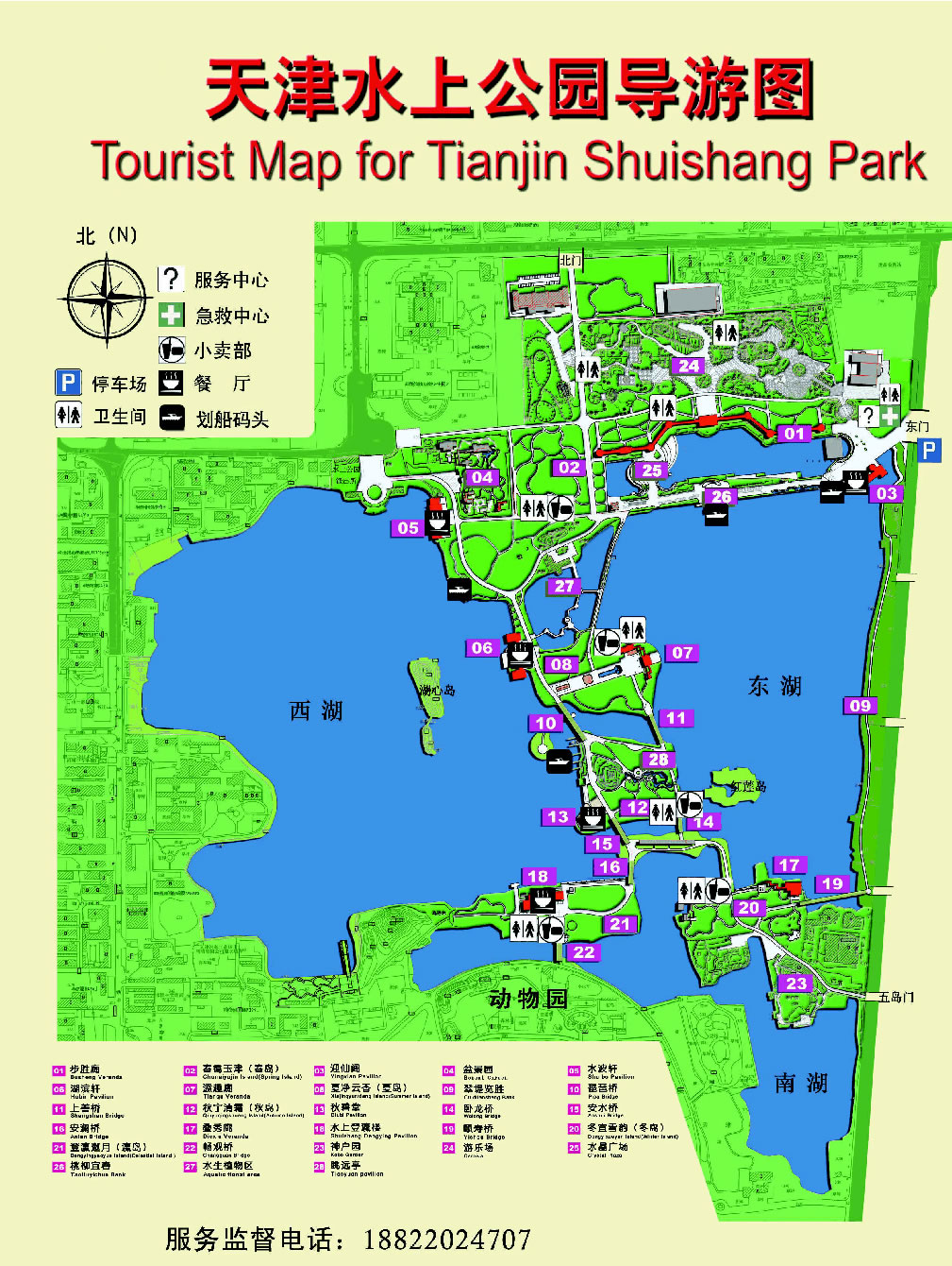 水上公園位于市區(qū)西南部,占地200公頃,園內(nèi)有三湖九島,其中水域面積89.2公頃,是天津市以水景為特色,以水上活動為