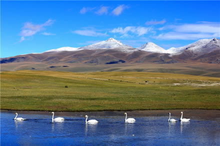 天鵝湖坐落在草原上,在新疆和靜縣巴音布魯克區(qū)政府約60千米的巴音鄉(xiāng)西南部。天鵝湖實(shí)際上是由眾多相互串聯(lián)的小湖組成的大面積沼澤地,這是中國(guó)第一個(gè)天鵝自然保護(hù)區(qū)。保護(hù)區(qū)水草豐茂,氣候濕爽。鳥類有128種,隸屬14目30科80余屬,其中雀形目53種,非雀形目75種;繁殖鳥95種,占74%,其中留鳥34種,棲息著中國(guó)最大的野生天鵝種群,是鳥類繁殖和渡夏的棲息地。獸類有20余種,其中,兩棲類2種,魚類5種。其中屬國(guó)家Ⅰ類保護(hù)的有8種,如雪豹、黑鸛、金雕、白肩雕等,Ⅱ級(jí)保護(hù)的有25種,如天鵝、盤羊、雪雞等。