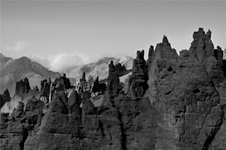 奎克烏蘇石林因位于天山山脈西段、那拉提山北麓的奎克烏蘇達(dá)坂之下而得名,石林區(qū)海拔3500米,長(zhǎng)9千米,寬5千米,相對(duì)高度30米。石林似林非林,它是由半膠潔的砂礫巖層經(jīng)外營(yíng)力的長(zhǎng)期雕塑,變得千姿百態(tài),光怪陸離,石林中有“歐洲古堡”,肅穆森嚴(yán),有“寶劍出鞘”,刺破青天,有“行人走獸”,或臥或躺。