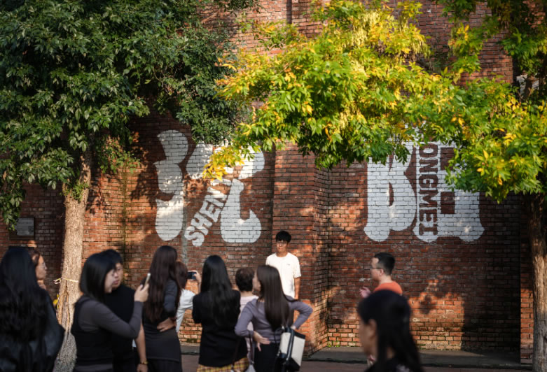 10月1日,游客在沈陽(yáng)紅梅文創(chuàng)園游覽。新華社記者 潘昱龍 攝