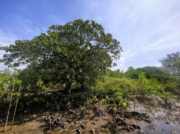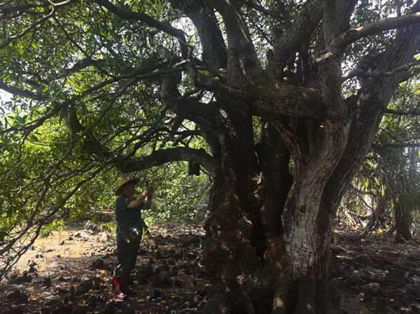 在鐵爐港紅樹林自然保護(hù)區(qū),4公頃面積孕育了500多株珍貴的古紅樹,其中包括世界瀕危物種、國(guó)家一級(jí)保護(hù)野生植物紅欖李。該保護(hù)區(qū)內(nèi)的9株原生紅欖李構(gòu)成了國(guó)內(nèi)最大的紅欖李古樹群落,也是該物種在全球范圍內(nèi)重要的天然分布地。