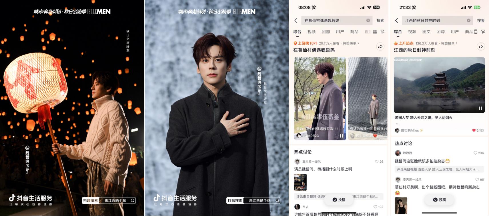 抖音牽手“秋日男友”魏哲鳴前往江西上饒葛仙村拍攝文旅宣發(fā)視頻引發(fā)廣泛關(guān)注,路透內(nèi)容#在葛仙村偶遇魏哲鳴 登上上饒同城榜TOP1;主視頻發(fā)布后,#江西的秋日封神時(shí)刻 更登頂同城榜及全國(guó)種草榜TOP6。活動(dòng)還與綜藝《今晚組個(gè)局》實(shí)現(xiàn)聯(lián)動(dòng),吳昕、代露娃、郭俊辰、何洛洛等明星演員前往上饒拍攝定制化文旅內(nèi)容,#上饒葛仙村千燈會(huì)偶遇明星 #何洛洛代露娃上饒葛仙村浪漫赴約 等路透內(nèi)容與節(jié)目看點(diǎn)登頂上饒同城榜TOP1,#組局團(tuán)在上饒千燈會(huì)一起祈愿 搶占同城榜TOP2。明星效應(yīng)有效激發(fā)用戶出行意愿,葛仙村交易額同比403%顯著增長(zhǎng),持續(xù)引爆目的地&商家出圈。