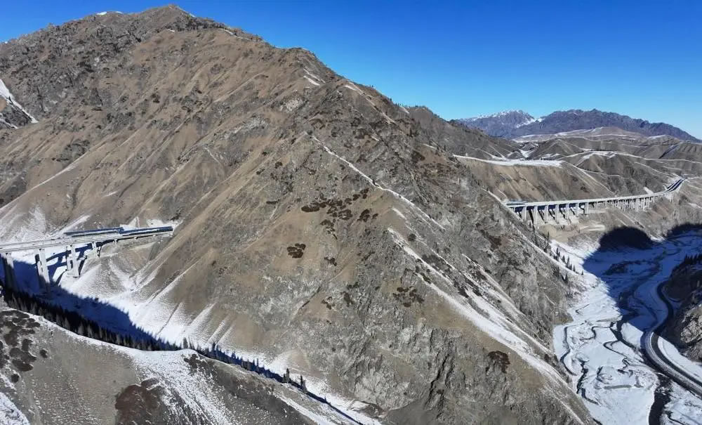 橋隧相連的烏尉高速穿越天山山脈。新華社記者 王菲 攝