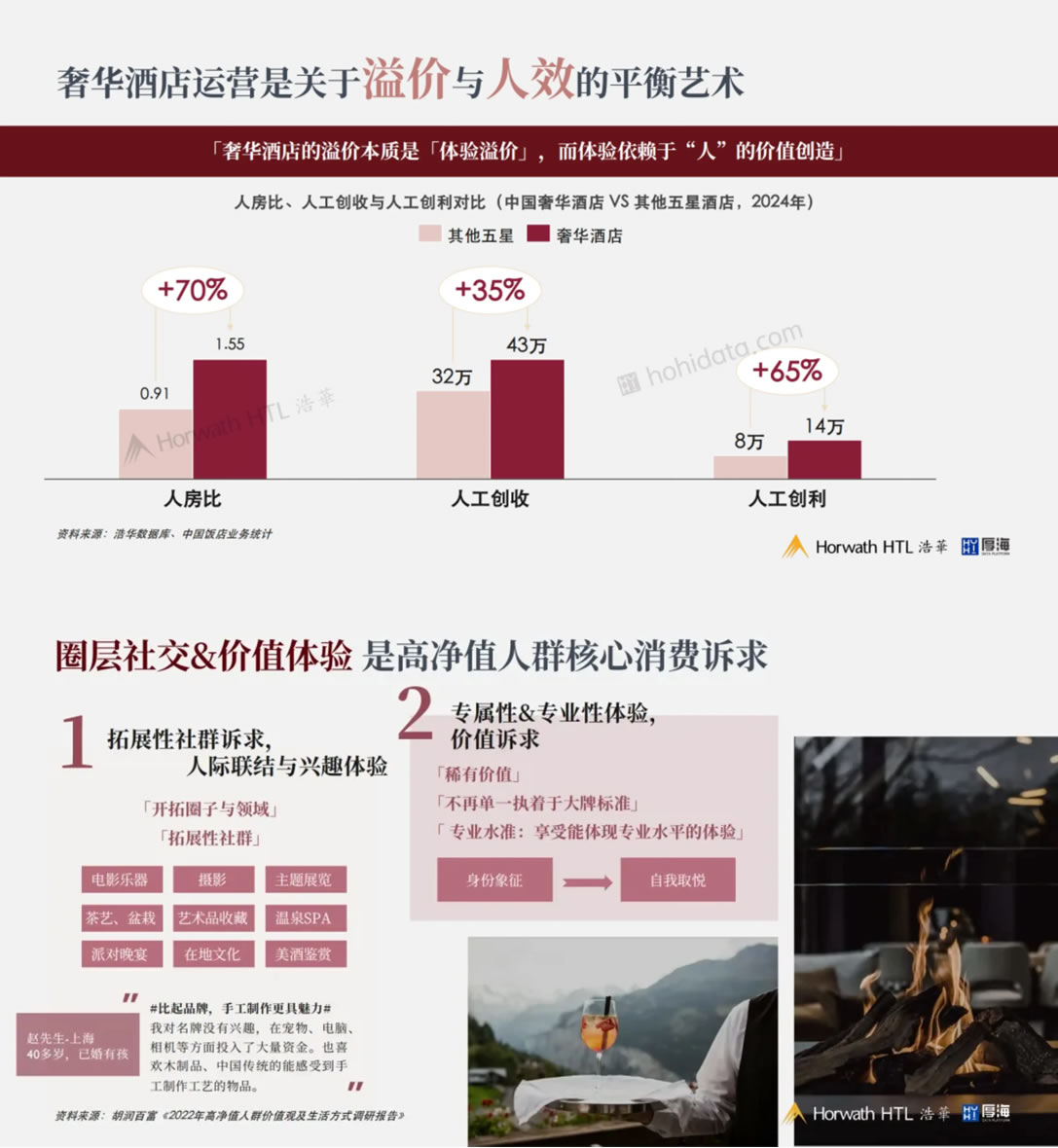 值得注意的是,奢華酒店運(yùn)營(yíng)本質(zhì)上是溢價(jià)與人效的平衡,而高凈值人群對(duì)圈層社交和獨(dú)特體驗(yàn)的需求,正推動(dòng)高端酒店在場(chǎng)景營(yíng)造、服務(wù)定制等方面持續(xù)升級(jí)以實(shí)現(xiàn)價(jià)值溢價(jià)。