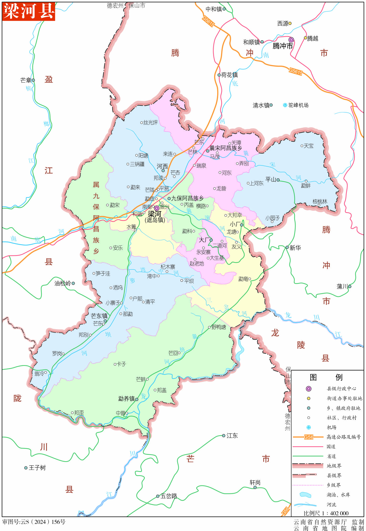 梁河縣轄3個(gè)鎮(zhèn)、6個(gè)鄉(xiāng):