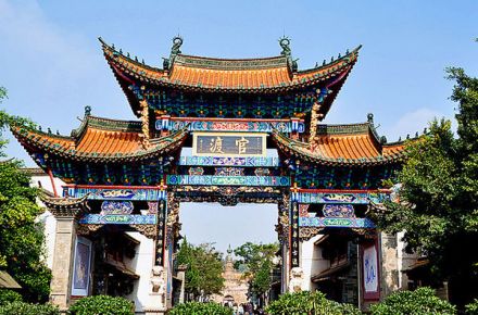 歷史悠久的官渡鎮(zhèn)位于昆明東南郊,是昆明地區(qū)著名的歷史文化古鎮(zhèn)之一。官渡古鎮(zhèn)大門(大牌坊)位于昆明東南郊 8 千米處,地處滇池北岸、寶象河下游,占地 17 平方千米。 官渡古鎮(zhèn)文化古跡眾多, 人文景觀豐富, 在不到 1.5 平方千米的面積內(nèi)就有唐、 宋、 元、明、清時(shí)期的五山、六寺、七閣、八廟等多處景觀。