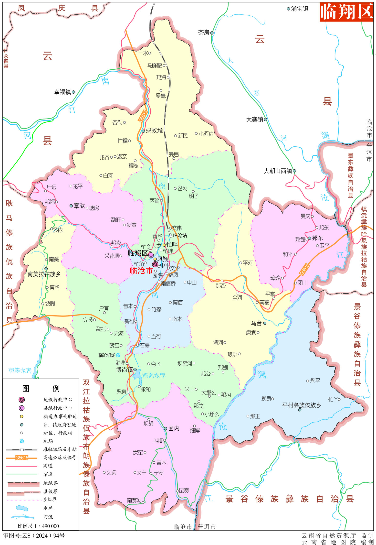 位置境域 臨翔區(qū)位于云南省西南部,瀾滄江與怒江兩大水系的分水嶺上,緊靠瀾滄江沿岸,東與景谷傣族彝族拉祜族自治縣接壤,南與景東彝族自治縣、鎮(zhèn)沅哈尼族拉祜族自治縣接壤,西與耿馬傣族佤族自治縣相連,北與云縣交界。東西橫距55千米,南北縱距83千米,總面積2652平方千米。
