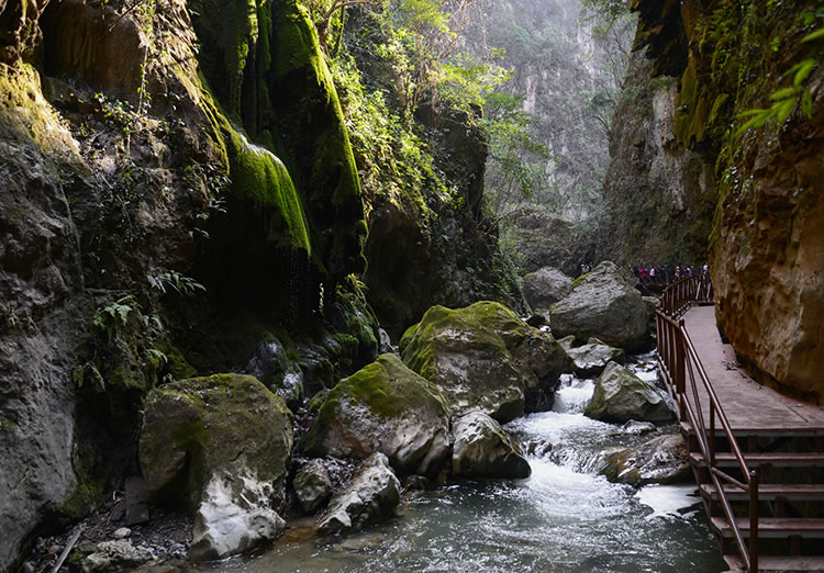 大地縫旅游景區(qū)位于縣城東南60千米的雨碌鄉(xiāng)。入口處稱“生命之門”。洞內(nèi)頂部呈弧形,有上億年巖漿形成的道道褶皺,當?shù)厝朔Q“天花板”,長約20余米。過了天花板,但見青天一線,在綿延曲折的10余千米地縫中,兩山最窄處僅1.6米,最寬處不過20余米。