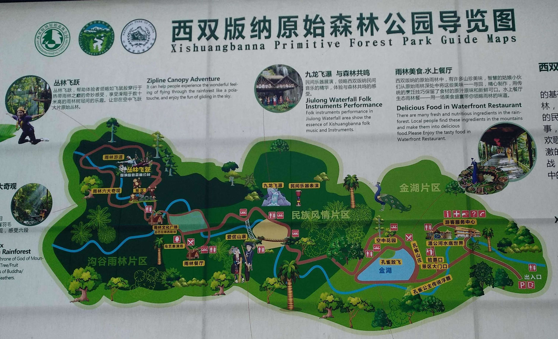 中心游憩區(qū),建有娛樂中心,會議服務(wù)中心,西雙版納民族歌舞餐廳,停車場所?蔀榭腿嘶I辦會議,組織娛樂活動,西雙版納學(xué)術(shù)交流,貿(mào)易洽談會……。西雙版納原始森林公園,森林密布,山青水碧,游覽面積寬闊,西雙版納民俗活動多樣,服務(wù)設(shè)施齊全。游人們可以在此飽覽風(fēng)光,體驗(yàn)西雙版納民族風(fēng)情,獲得美的享受。
