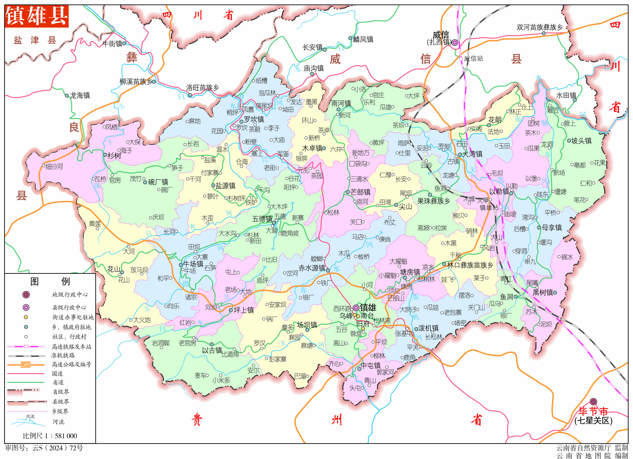 鎮(zhèn)雄縣轄3個(gè)街道、20個(gè)鎮(zhèn)、7個(gè)鄉(xiāng):