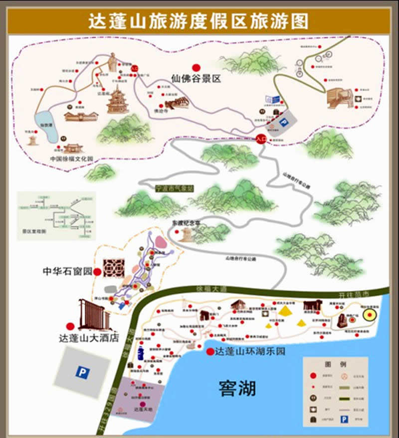 雅戈?duì)栠_(dá)蓬山旅游度假區(qū)是雅戈?duì)栠_(dá)蓬山旅游投資開發(fā)有限公司開發(fā)的以徐福東渡為主題的歷史文化遺跡與自然勝景和世界主題樂園相結(jié)合的旅游區(qū),其主要包括“80天環(huán)游地球”世界自然人文主題樂園、中國(guó)徐福文化園、中華石窗園、佛跡寺和雅戈?duì)柼煊蚓频晡宕髤^(qū)塊,集旅游、休閑、度假、娛樂于一體。旅游區(qū)融合自然山水、歷史人文和現(xiàn)代游樂。