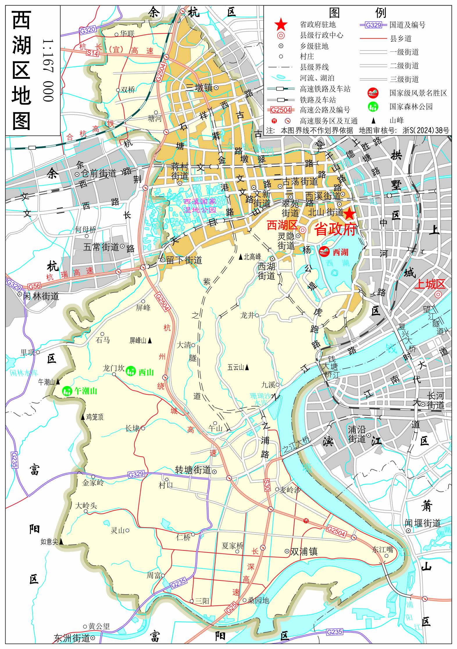 街道:北山街道、靈隱街道、西溪街道、翠苑街道、文新街道、古蕩街道、西湖街道、轉(zhuǎn)塘街道、留下街道、蔣村街道