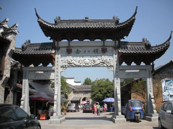 古鎮(zhèn)的大戶有曹、姜、楊、金四家。他們圍繞著宗族而居,至今還保留著36幢完整的古民居大院。站在老街上,最富有特色的是家家戶戶的門楣。門楣多為樓閣式,由梁、枋、檐、望板和垂簾虛柱構成四柱三樓式。各個部件都有精細的木雕裝飾,題材多為福祿壽、合和二仙等吉祥物。這木制的門楣和江南其他地區(qū)的磚雕門樓有著截然的反差,使人走在這老街之上,無不被這景色所吸引。看這徽式的馬頭墻、浙式的屋脊、贛式的檐櫞、閩式的土墻,其內涵的豐富已足以使建筑學家所驚嘆。