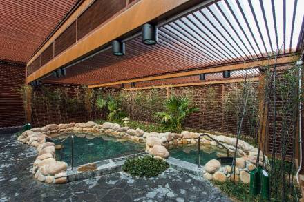 源之圓溫泉館占地面積10800平方米,由溫泉VIP海景套房、男女室內和露天溫泉、合家歡溫泉、理療按摩間、餐廳、多功能包房、休息大廳、游戲活動室、兒童樂園等組成。這個中心的溫泉,是在2600米的深縱向與橫向交錯斷裂層內抽出,水齡在3萬年以上,最高出水溫度54度,經冷卻后注入泡池,是長三角內為數不多的一處海濱溫泉。