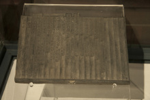 千晉齋,民國(guó)時(shí)期.甬上學(xué)人馬廉藏有晉磚干余枚,言其藏室曰“千晉齋”。在天一閣民國(guó)二十四年(1935年)重修之后,其將自己收集的晉磚全部捐贈(zèng)給天一閣,天一閣在尊經(jīng)閣西邊特辟一室予以儲(chǔ)存陳列,仍名“千晉齋”。1959年,天一閣擴(kuò)建,將征購(gòu)的天一閣東首的5間民房修茸一新,辟為陳列室,“千晉齋”遷于此。