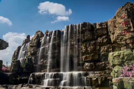 水簾洞水流湍急,寬60米,比著名的黃果樹瀑布還要寬30多米。這里的山巖是從真實(shí)的石頭上翻制下來,用玻璃鋼鑄片組裝,周圍的植物都是高仿真植物,包括棕櫚在內(nèi)的十多種品種。